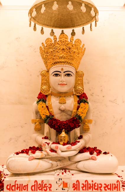 Within the temple, visitors will find the idols of Gods of Jainism, Shaivism, and Vaishnavism (along with Gods and Goddesses from other religions), which share equal reverence on the same platform. The idol of Lord Shree Simandhar Swami sits at the center, made entirely of marble and is 72 inches high.